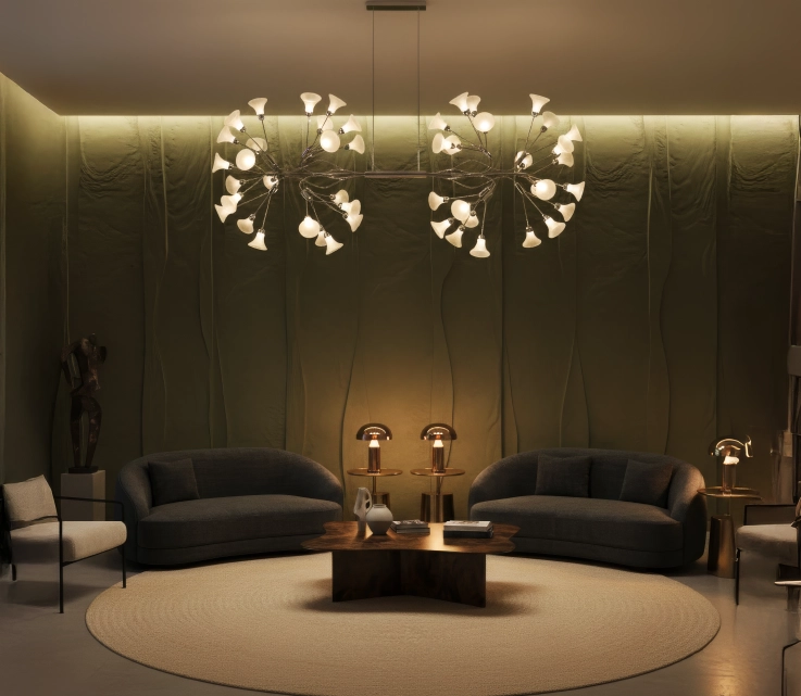 Dancing Vine offers warm ambient illumination designed to create atmosphere rather than harsh brightness. It enhances mood, depth, and spatial warmth within refined interiors.