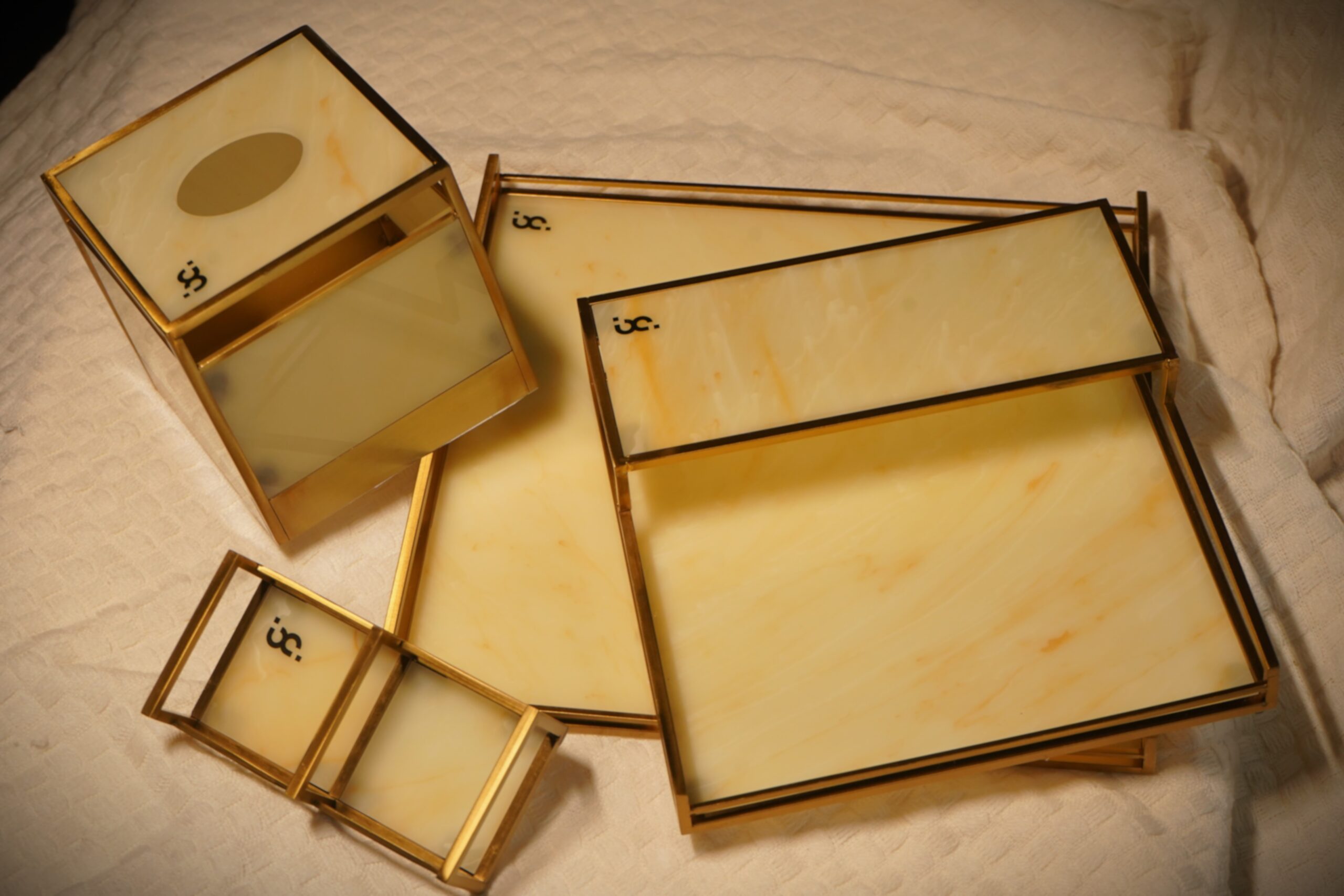 Elevate your home with the Signature Living Trays – Set of 4. These exquisite trays blend refined craftsmanship with modern functionality, making them perfect for serving, organizing, or showcasing your favorite décor.